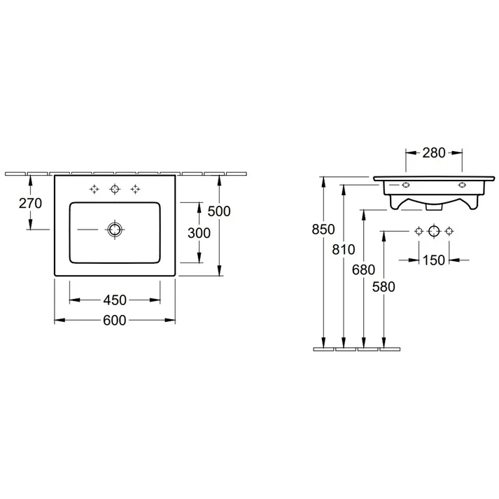 Cu dimensiunile de 600x500 mm, lavoarul oferă un spațiu generos pentru utilizare, fiind ideal pentru confortul zilnic. Este prevăzut cu un orificiu pentru baterie, dar dispune suplimentar de două orificii neperforate, ceea ce permite instalarea unei baterii cu 3 orificii, oferind flexibilitate în alegerea echipamentelor.
