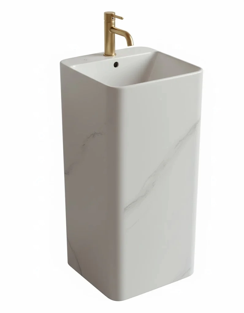 Lavoar freestanding ceramic H15-CUG01-M – design pătrat marmorat