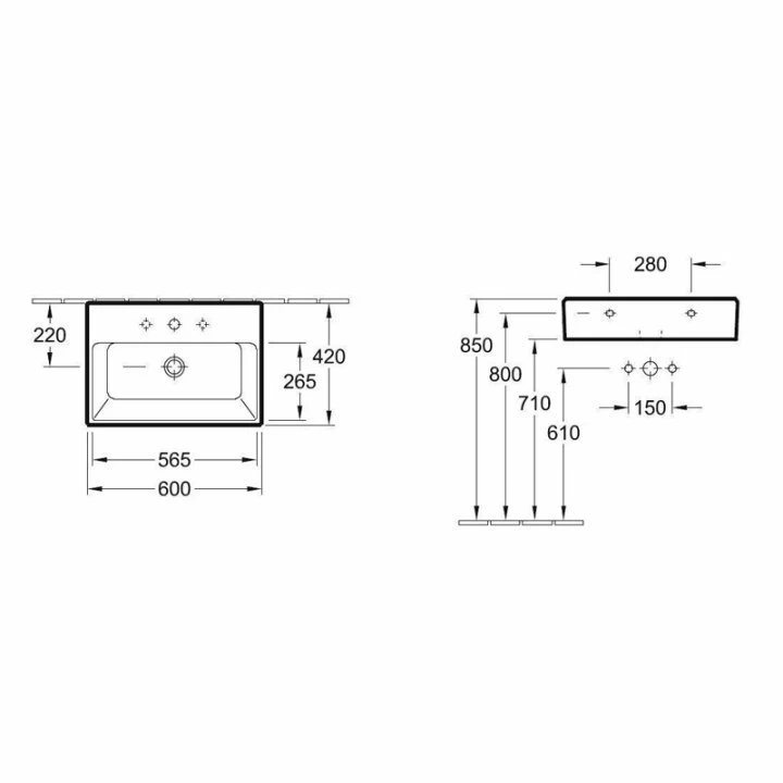 Lavoarul din gama Villeroy&Boch, colectia Memento, se monteaza pe blat si are urmatoarele dimensiuni : 600x420xH140 mm. Lavoarul prezinta orificiu pentru baterie si preaplin, are 1 orificiu de baterie executat si 2 marcate (pentru situatia in care se doreste utilizarea unei baterii cu 3 treceri) si are culoarea alb alpin.