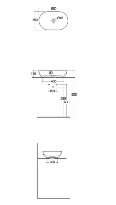 Lavoarul oval Rak Feeling se monteaza pe blat, avand setul de fixare inclus, prezinta margini subtiri, este fabricat din ceramica sanitara are culoarea alb cu finisaj lucios, si are urmatoarele dimensiuni: 550x350xH130 mm. Lavoarul nu prezinta orificiu pentru baterie si preaplin.