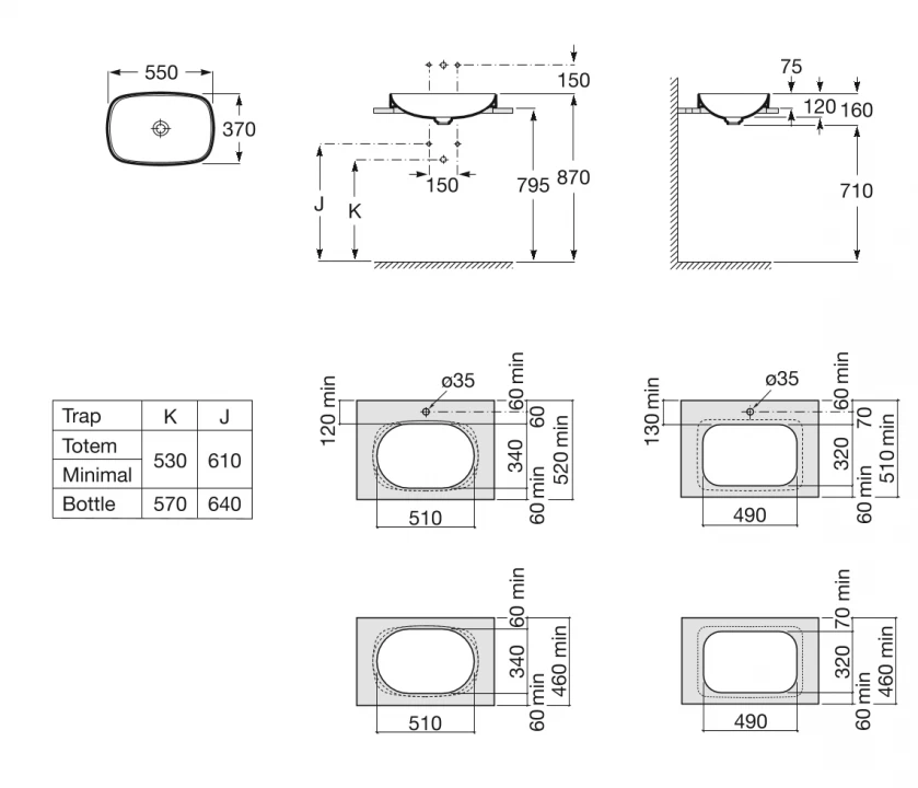 Lavoarul Roca din colectia Inspira, este fabricat din ceramica sanitara de tip FINECERAMIC® , ceea ce confera forme definite de rotunjimea si finetea liniilor, fara niciun compromis referitor la durabilitate. Acesta este de culoare alba, are dimensiunile 550 x 370 x H75 mm,o adancime a vasului de 120 mm, iar capacitatea lavoarului este de 13,5 l. Lungimea interioara a vasului este de 550 mm, latimea este de 370 mm si are o greutate de 9,6 kg. Recomandam achizitionarea impreuna cu sifonul din sectiunea produselor recomandate.