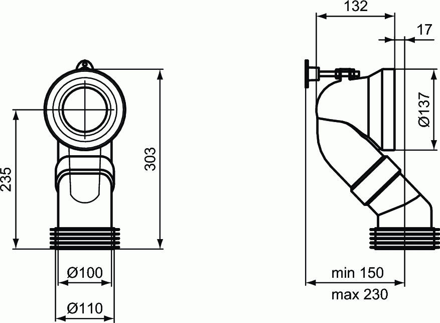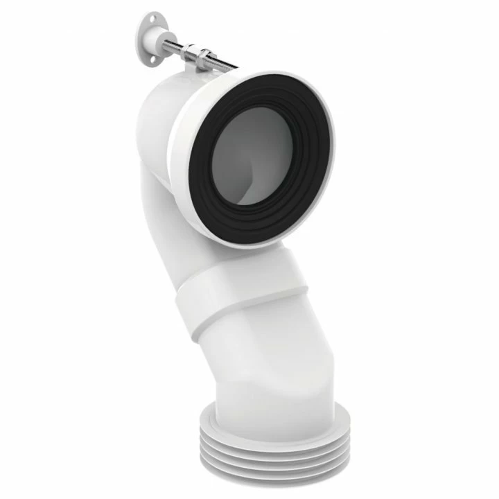 Racord de scurgere 90° - pentru 250-270 mm distanta (de la perete la centrul scurgerii) care ajuta la schimbarea scurgerii de la vasul de wc din orizontala, in verticala.