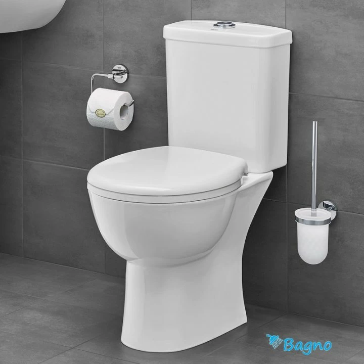 Setul promotional face parte din gama Grohe, colectia Bau Ceramic. Atat vasul wc cat si rezervorul sunt confectionate din portelan vitros (aspect sticlos - lucios). Vasul wc are evacuare verticala, iar rezervorul alimentare laterala, volumul de spalare fiind de 6/3 l. Capacul este cu inchidere lenta fabricat din material Duroplast. Setul promotional include toate componentele utile instalarii.
