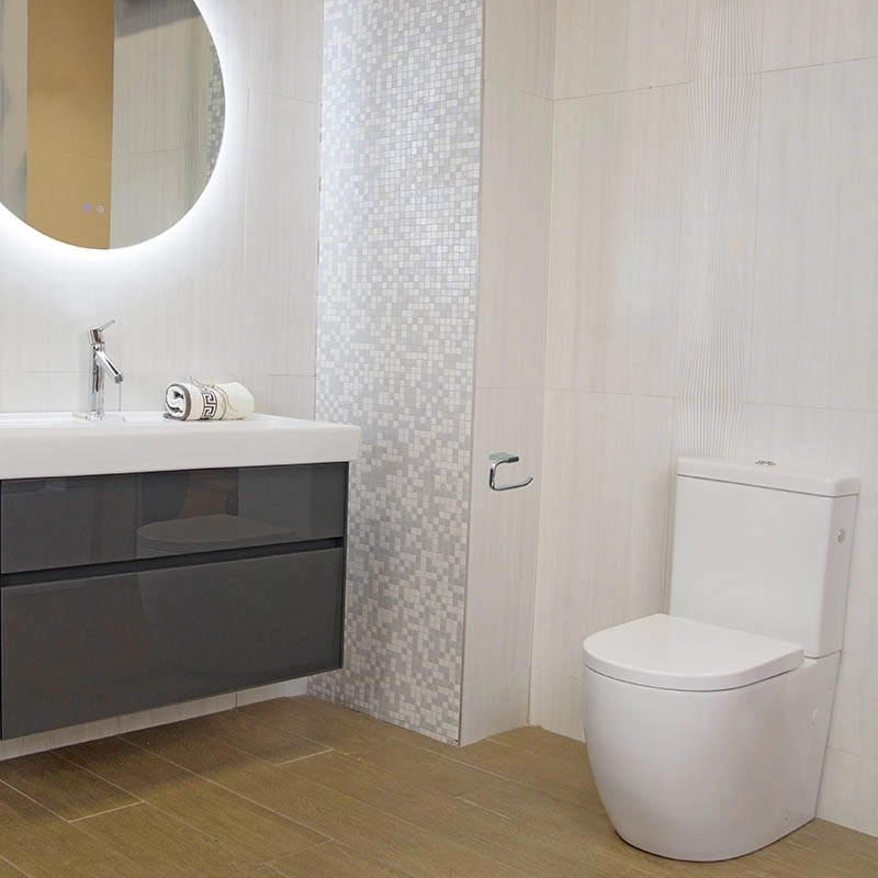 Setul Minerva al producatorului Fluminia este compus dintr-un vas wc cu montaj lipit de perete, a carui evacuare este universala deoarece include un racord de tip "P trap" pentru evacuarea orizontala si un racord de tip "S trap", pentru evacuarea verticala. Fabricat din ceramica sanitara de culoare alb cu finisaj lucios. Lipsa ramei, face din vasul de wc o toaleta cu marginile vizibile, ceea ce faciliteaza intretinerea si implicit curatarea. Tipul de spalare este prin vartej de apa "Tornado" renumit pentru clatirea eficienta cu un semnificativ consum redus de apa. Dimensiunile specifice sunt 63x38xH83 cm.