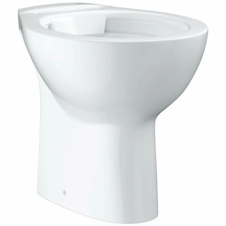 Vasul de WC face parte din gama Grohe colectia Bau Ceramic cu evacuare verticala si are urmatoarele dimensiuni : 515x357xH400 mm. Acesta este confectionat din ceramica sanitara de culoare alb si se monteaza pe pardoseala. Vasul de WC este conceput fara margini interioare (Rimless), ceea ce reprezinta un design ingenios, ce nu permite acumularea murdariei si a depunerilor de calcar, reprezinta o solutie inovatoare pentru mentinerea igienei vasului de toaleta. Kitul de fixare este inclus. A se achizitiona impreuna cu unul dintre produsele recomandate in sectiunea produselor complementare.