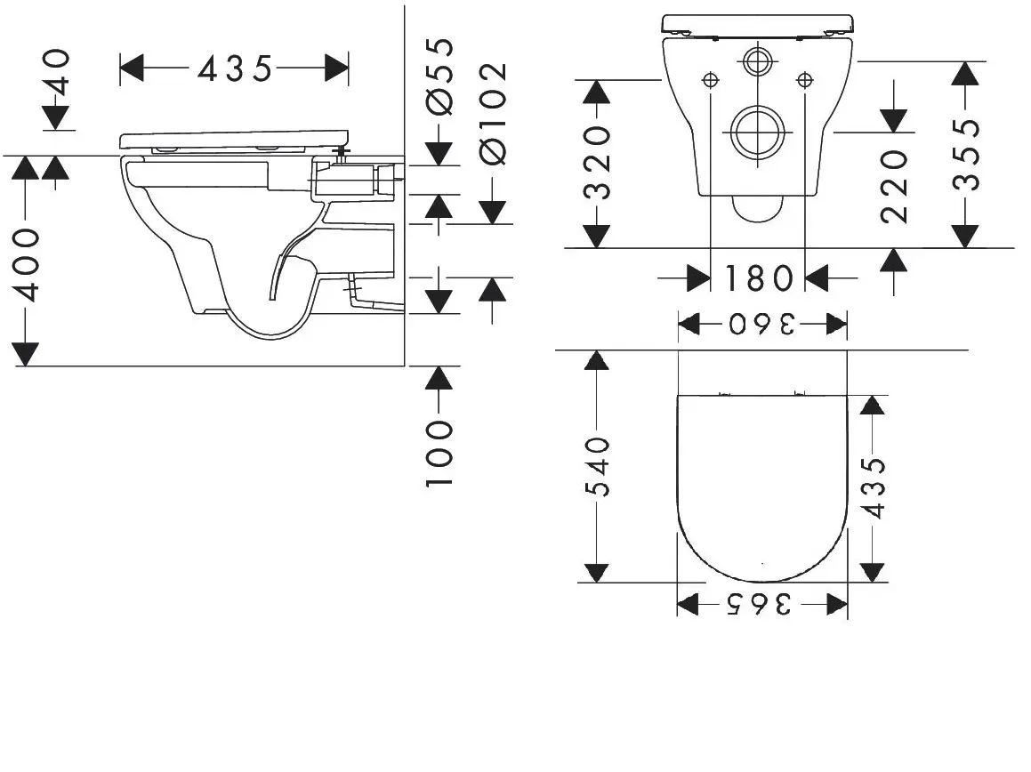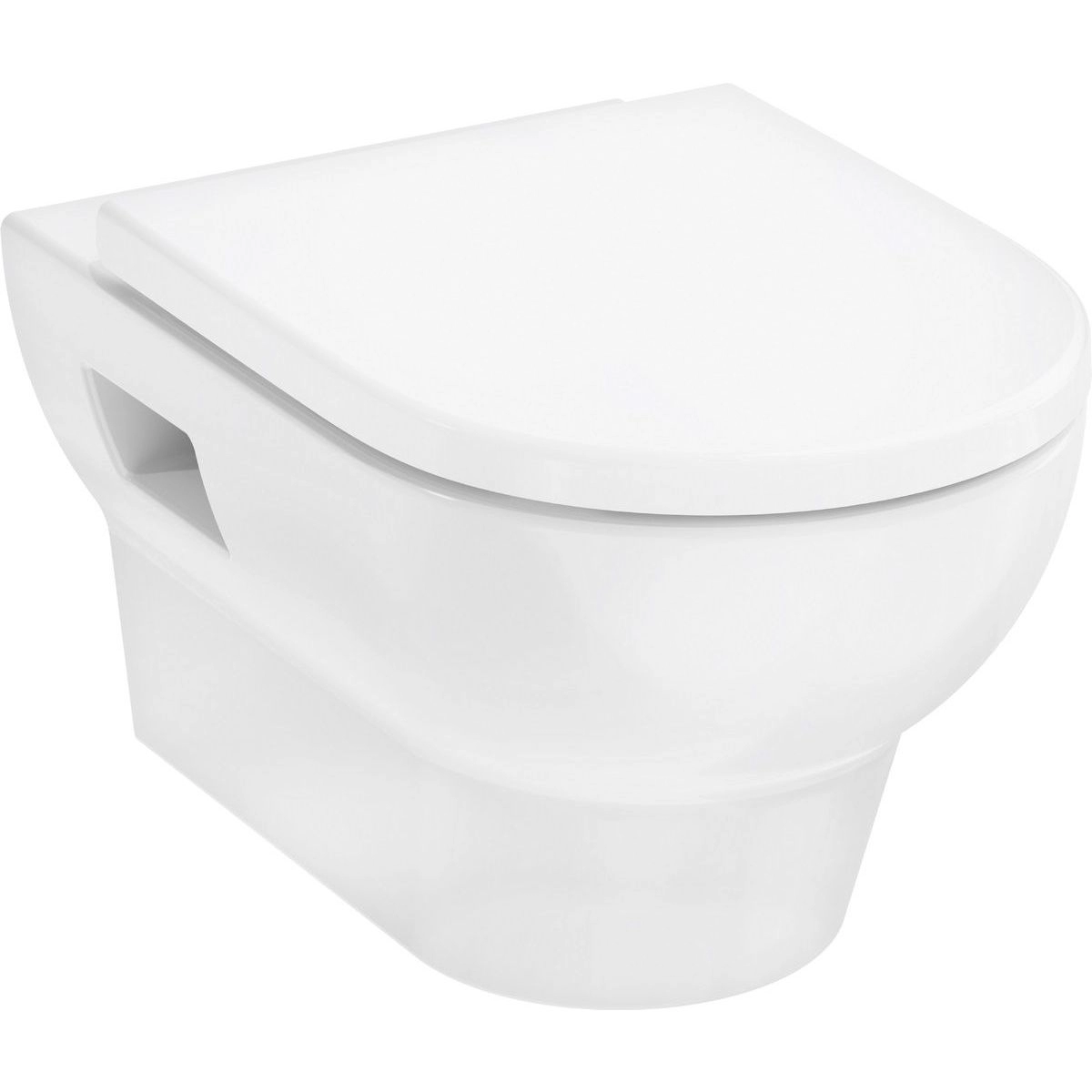 Montajul suspendat, cu fixare vizibilă și alimentare cu apă din spate, oferă un aspect ordonat și modern, facilitând totodată curățarea zonei de sub toaletă. Distanța standard de montare de 180 mm asigură compatibilitatea cu majoritatea structurilor pentru perete.
