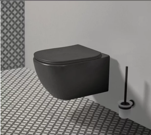 Vas wc cu montaj suspendat pe cadru wc cu rezervor incastrat, fabricat din ceramica sanitara de culoare negru-mat, face parte din colectia Tesi, beneficiaza de tehnologia AquaBlade oferind o performanta de spalare cu nivel scazut de zgomot si volum redus de apa. Include setul pentru fixare complet ascunsa.
