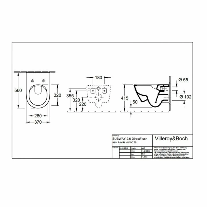 Vasul de WC din gama Villeroy&Boch, colectia Subway 2.0, este realizat din portelan sanitar de culoare alba, se monteaza suspendat si are urmatoarele dimensiuni : 560x370xH415 mm. Este dotat cu sistemul de prindere Suprafix 3.0 ( este un sistem de fixare ascuns dedicat vaselor WC suspendate V&B; elementele de fixare sunt ascunse in corpul toaletei fiin invizibile din exterior; astfel dispar gaurile de acces de pe suprafata toaletei, dispar capacele de mascare, glazura este neintrerupta; Vasele WC care au sistem de fixare Suprafix 2.0 sau 3.0 sunt dotate si cu sistemul de fixare a capacului Quick Release), are inclus sistemul de economisire a apei AQUAREDUC ( clatirea se realizeaza cu un volum de apa de numai 3/4,5 litri ). Prezinta tehnologie Direct Flush ( vasele WC fabricate in tehnologia Direct Flush, nu au rama interioara ,sunt rimless. Jetul de apa este astfel directionat incat spala perfect , dar nu stropeste in afara vasului. Neexistand nici un sant in interiorul vasului, acesta se curata complet. Practic aceasta tehnologie elimina spatiile greu acesibile, greu de curatat din corpul vasului de toaleta. Are o forma rotunjita, iar evacuarea se realizeaza orizontal. Prezinta de asememnea tehnologia inovatoare ViFresh (2 suporturi -curatare cu gel, rim-block, 2 suruburi cu capac), iar setul de fixare "Supra Fix 2.0" este inclus. Tehnolofia ViFresh consta intr-un locas ascunsa in corpul vasului de WC( fara a modifica dimensiunea acestuia), in care se introduce pastila/ gelul deodorizant. Prin apasarea clapetei de actionare a apei, se dizolva pastila/gelul, iar vasul de WC se curata singur, fara a fi nevoie de agatarea pastilelor odorizante pe rama vasului de WC. Cu numeroase forme si dimensiuni disponibile, Subway ofera solutia perfecta pentru camera de baie, ridicand fiecare necesitate la o valoare excelenta. Diverse, flexibile, versatile.