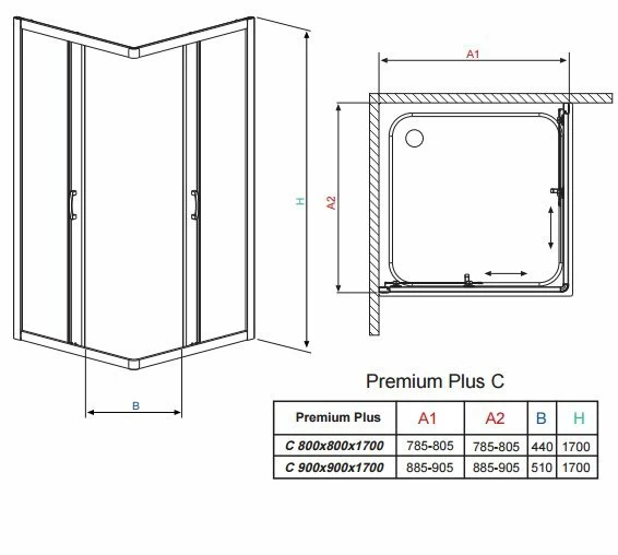 Cabina de dus Radaway Premium Plus C 1700, patrata, 90x90x170 cm, usi glisante