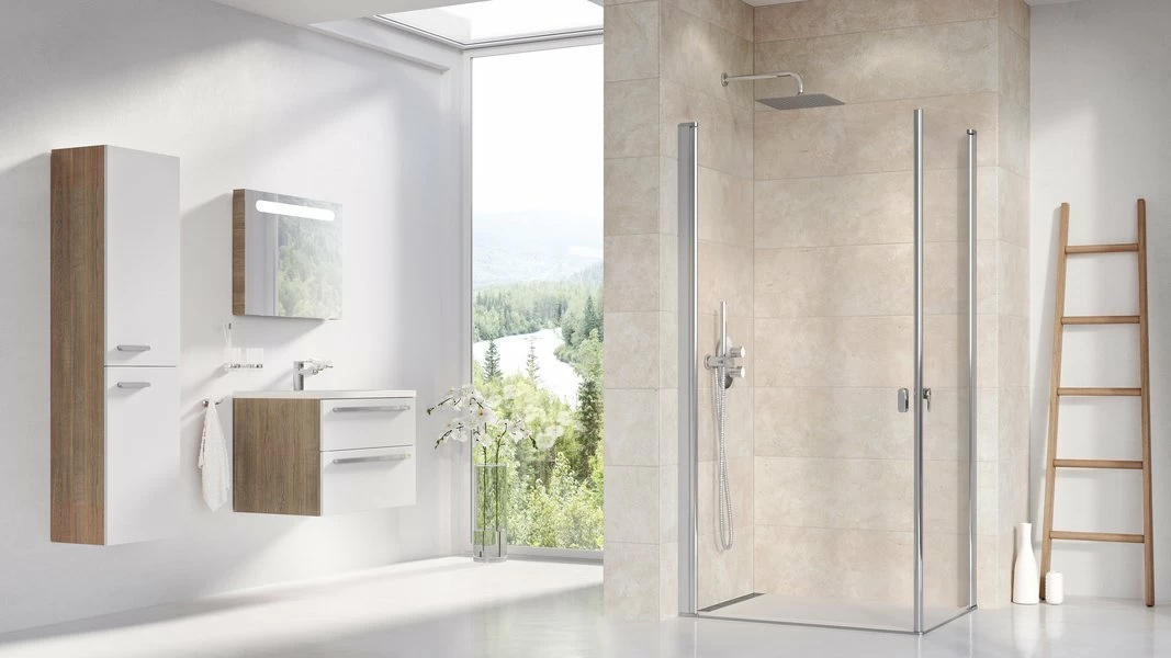 Cabina de dus din gama Ravak, colectia Chrome este realizata din sticla securizata de 6 mm, tratata anticalcar (AntiCalc - strat protector cu proprietati hidrofuge, impiedica depunerile de calcar si permite intretinerea usoara a suprafetei) si are urmatoarele dimensiuni : 800x900xH1950 mm, iar latimea de acces este de 1052 mm. Este compusa din doua usi CRV1, iar profilul este cromat. Cabina de dus este reversibila, iar usile sunt batante atat spre exterior cat si spre interior. Cu noul profil de extindere Chrome, puteti inlocui profilul standard care vine cu produsul dvs. Chrome. Cu noile profile de extindere Chrome, puteti inlocui profilele standard. Prin inlocuirea profilelor standard cu profile de pozitionare extinse, produsul poate fi extins cu inca 20 mm, daca optati pentru un singur profil (a unei singure usi CRV1 ), sau 40 mm, in cazul in care optati pentru ambele profile de extindere - a ambelor usi CRV1, care se achizitioneaza separat (vezi sectiunea produselor complementare).