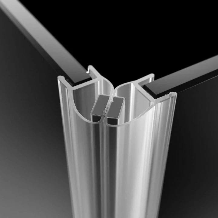 Cabina de dus este fabricata din sticla securizata cu grosimea de 6 mm, acoperita cu stratul EasyClean, care ajuta la pastrarea curateniei cabinei si faciliteaza procesul de intretinere al acesteia. Detaliile cromate elegante, balamalele cu mecanism de ridicare si coborare a usii, sistemul de ajustare a profilelor ce permite preluarea denivelarilor pana la 10 mm, garniturile pentru etansarea cabinei si masca superioara pentru profilul de perete, alcatuiesc o cabina estetica si spatioasa. Laturile cabinei sunt de 900 mm dreapta si 900 mm stanga (usa aflandu-se pe partea stanga), iar inaltimea cabinei este de 1950 mm.