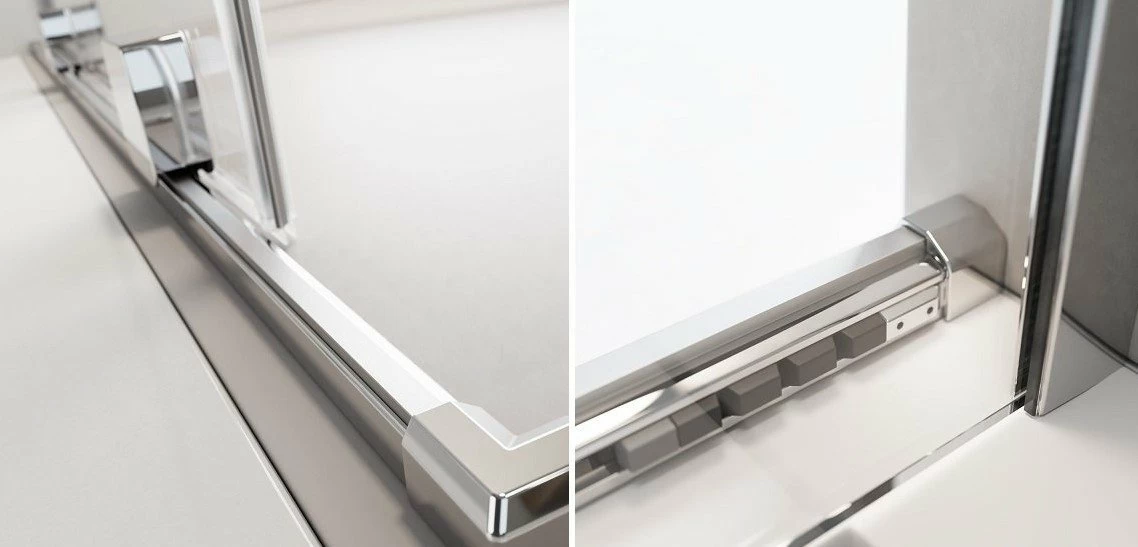 Noua serie Furo prezinta sistem inovator de ghidare si incetinire a miscarii usii. Cabina poate fi montata cu usurinta atat pe cadita de dus, cat si direct pe pardoseala. Laturile cabinei sunt de 900 mm dreapta (usa aflandu-se pe partea dreapta) si 800 mm stanga, iar inaltimea cabinei este de 2000 mm. Cabina de dus este fabricata din sticla securizata cu grosimea de 8 mm, acoperita cu stratul EasyClean, care ajuta la pastrarea curateniei cabinei si faciliteaza procesul de intretinere al acesteia (proprietati hidrofuge, datorita carora picaturile de apa nu se mentin pe suprafata sticlei, ci se scurg, fara a lasa depuneri). Detaliile cromate elegante, sticla transparenta, rolele montate la nivelul sticlei la interior, faciliteaza curatarea cabinei. Usa gliseaza prin fata partii fixe, oferindu-ne astfel o intrare spatioasa si confortabila. Seria Furo este caracterizata de o calitate fara precedent printre cabinele de dus cu sistem de glisare. Prin renuntarea la ghidajul din partea superioara si asezarea usii pe role in partea de jos, am obtinut o cabina de o eleganta, luminozitate si transparenta extraordinara. Sistemul de fixare de perete cu profile - permite preluarea curburii peretelui .