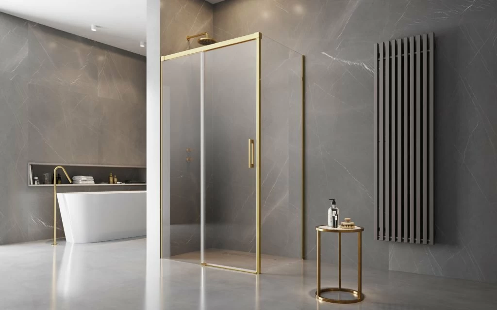 Idea Gold este o serie de cabine de dus expresiva , caracterizata de forme geometrice care creaza un intreg proportional . Detaliile aurii sunt parte a unor produse impresionante si sofisticate , care sunt pe placul celor care cauta solutiile neuzuale si avantgardiste. Cabina de dus dreptunghiulara din seria Radaway Idea Gold KDJ are urmatoarele dimensiuni : 1500x700XH2005 mm, prima dimensiunii este a usii, usa este pe partea stanga, latimea de acces este de 640 mm, este realizata din sticla securizata de 6 mm, are profil si manere de culoare auriu. Sistemul de fixare de perete cu profile - permite preluarea curburii peretelui. Exista posibilitatea de a debloca usa si a o bascula pentru a curata cabina mai bine. Glisorul minimalist garanteaza functionarea silentioasa a usii si prezinta mecanism invizibil de schimbare si reglare a usii. Banda magnetica asigura etansarea cabinei. Garniturile din elastomer rezista la schimbari de temperatura si umiditate. Aceasta cabina de dus poate fi montata atat pe cadita de dus, dar si direct pe pardoseala-cu cantul sticlei sau muchia profilului de-a lungul bordurii placilor ceramice. In varianta standard, toate componentele necesare pentru asamblarea cabinei de dus sunt adaugate produsului, indiferent daca este cabina cu, sau fara prag. Toate instructiunile necesare pot fi gasite in manualul de instalare. Sticla este acoperita cu tehnologie EasyClean, un strat care faciliteaza procesul de curatare. Ansamblul cabinei de dus se compune din doua parti: usa culisanta si perete lateral. Usa cabinei de dus Ideea Gold KDJ este formata dintr-o parte fixa si o parte mobila, de calitate superioara cu amortizor inovator si sistem de ghidare unic, care asigura o buna functionare si rulare linistit.