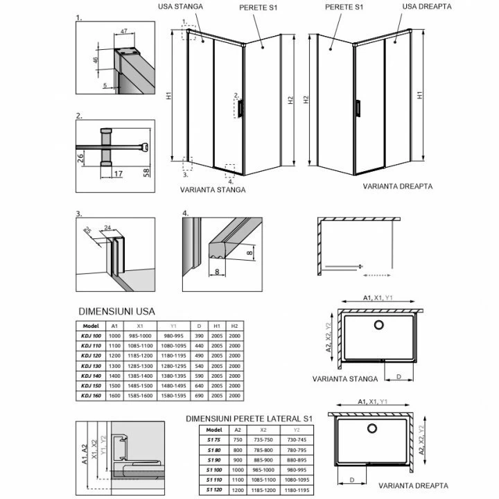 Perete lateral cabina de dus face parte din gama Radaway, colectia Idea Black KDJ avand un mecanism silentios de glisare a usilor si dimensiunea de 1000 x H2005 mm. Este cu montaj pe dreapta si confectionata din sticla securizata cu o grosime de 6 mm. Cu ajutorul stratului de protectie cu proprietati hidrofuge EasyClean mentine curata suprafata si permite intretinerea usoara a acesteia. Finisajul profilului este negru mat iar montajul cabinei se poate realiza pe cadita de dus sau direct pe pardoseala. Stabilitate foarte buna asigurata de mecanismul de ajustare a profilelor care permite compensarea iregularitatilor peretilor. Pentru aceasta dimensiune este recomandat un reglaj intre 980-995 mm.