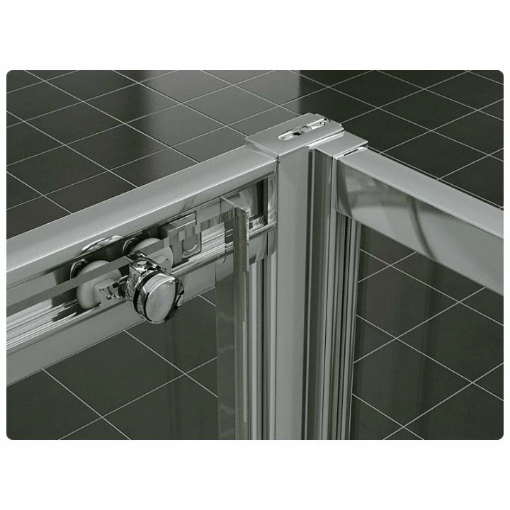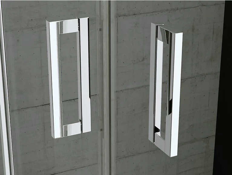Usa cabina de dus culisanta face parte din seria cabinelor de dus TOP-LINE cu acces pe parte stanga sau dreapta, ce confera bailor un aspect distinct. Elegante si moderne din punct de vedere estetic, practice si usor de ingrijit in utilizarea zilnica. Sticla securizata de 6 mm este tratata anticalcar cu ajutorul stratului Aquaperle standard avand o inaltime de 1900 mm. Modul de deschidere prin culisare cu inchidere magnetica este realizat printr-un profil crom slefuit lucios, acesta fiind foarte plat ,tranverseaza partea de sus a sticlei fiind imbinat la capete intre usa si perete lateral cu clac care garanteaza etansarea si montarea estetica. Montarea usii pe perete necesita gaurire, ea fiind reglata printr-un surub, iar in cazul unui perete denivelat aceasta se poate realiza prin compensare de pana la 25 mm . Latimea este de 900 mm fiecare, inaltimea de 1900 mm iar latimea partii fixe este de 448 mm. Usile au ca accesorii manere cromate cu forma dreptunghiulara. Sistemul de inchidere/deschidere este facilitat de rolele duble pe care usile aluneca usor prin culisare, evitand lovirea usilor datorita opritorilor. Deasemenea achizitionarea a doua usi culisante, pot forma o cabina de diverse dimensiuni cu dechidere pe colt.