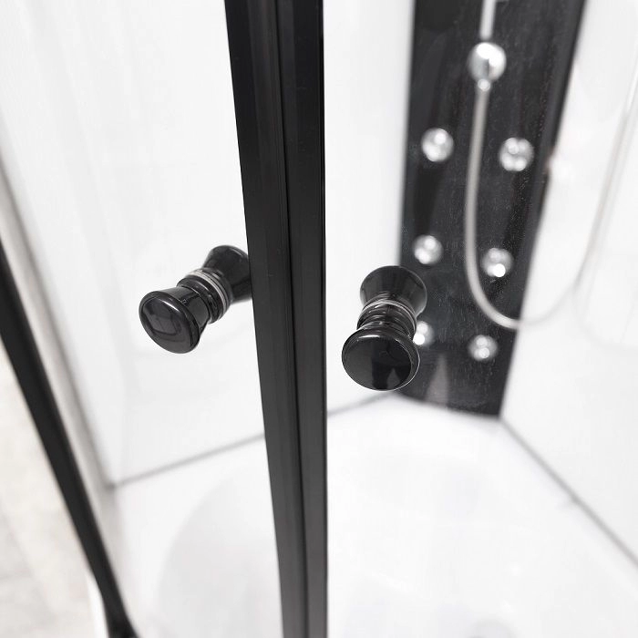 Cabina de dus FUTURE BLACK 2 – BW850 este o solutie moderna si eleganta, conceputa pentru a oferi confort si functionalitate intr-un spatiu compact. Cu un design semirotund si dimensiuni de 80 x 80 x 215 cm, aceasta se integreaza usor in baile contemporane, optimizand eficient spatiul disponibil.