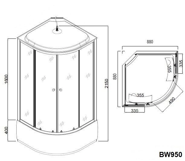 Cabina de dus completa, semirotunda, 80x80x215 cm