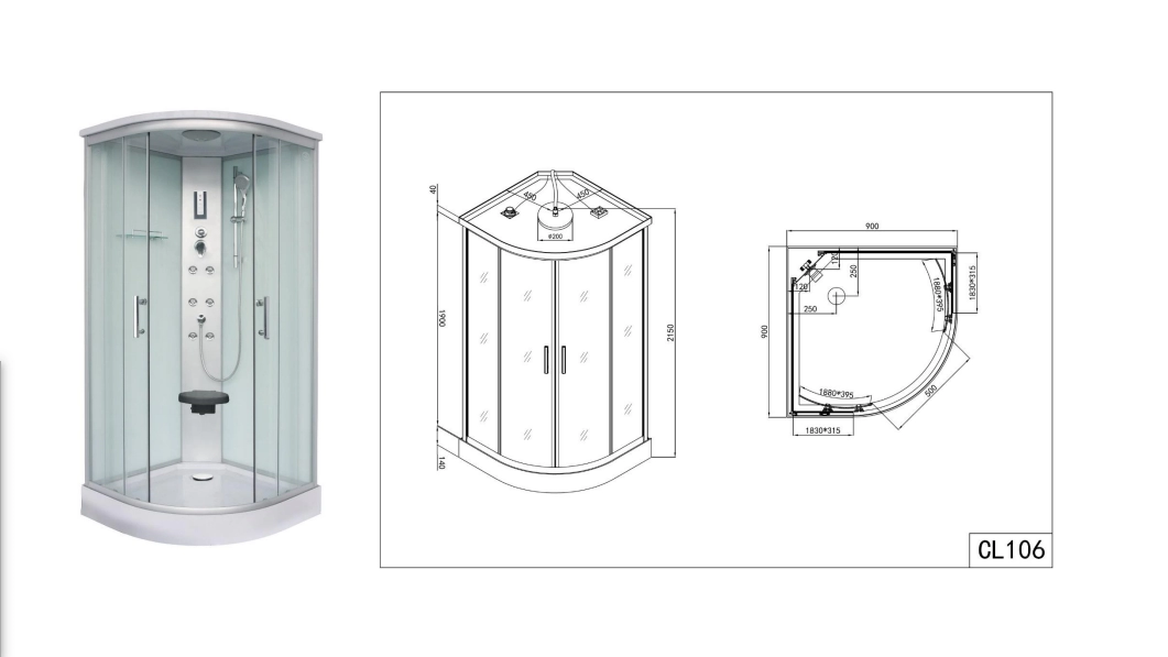 Cabina de dus Sanotechnik, colectia QuickLine are o dimensiune de 90 x 90 x 215 cm si este alcatuita din sticla securizata de 5 mm, 6 duze de hidromasaj si usi glisante cu role duble. Detine profile din aluminiu, un dispersor fix, dispersor mobil, etajera din sticla. Cabina de dus cu hidromasaj are in dotare un scaun rabatabil, radio si iluminare.