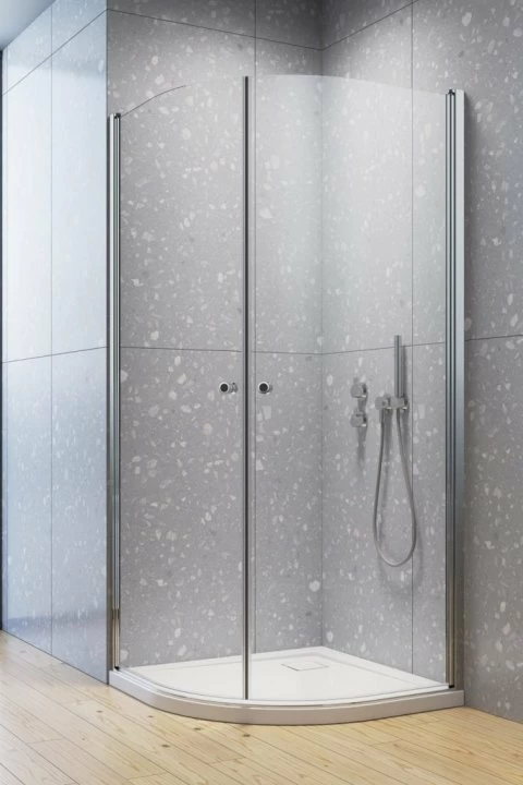 Cabina de dus semirotunda Radaway face parte din colectia Eos PDD I, avand sticla securizata de 6 mm cu un invelis de tip Easy Clean ce impiedica depunerea calcarului si ajuta la o curatare mai usoara atat pe partile fixe, cat si pe cele mobile. Profilele sunt crom iar montajul cabinei se poate realiza pe cadita de dus sau direct pe pardoseala. Deschiderea cabinei este batanta cu un mecanism silentios si dimensiunea de 800 x 800 x H1970 mm, denota un avantaj real in curatarea si igienizarea acesteia. Reglajul profilelor este intre 769-779 mm. Montajul se realizeaza pe colt cu un sistem de fixare cu profile care preia curburile peretului. Inchiderea cabinei se realizeaza prin etansare printr-o banda magnetica si o garnitura de elastomer rezistenta la temperatura si umiditate.