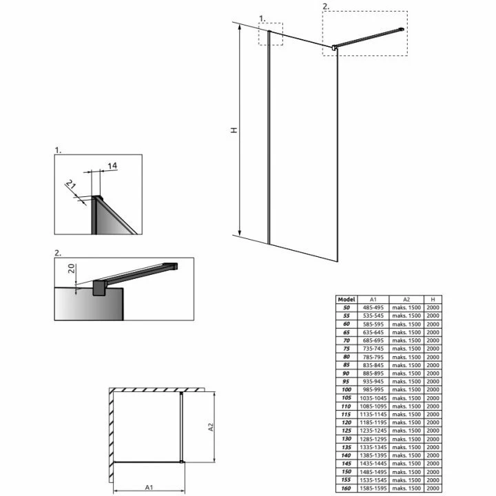 Tip produs: Cabina dus Walk-in