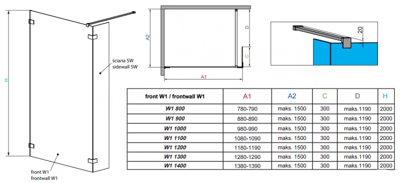 Peretele frontal W3 cu dimensiunile de 1000X2000 mm, achizitionat impreuna cu un perete lateral SW 300X2000 mm (cod 383160-01-01), formeaza cabina de dus Walk-In Euphoria II. Profilul de etanseizare permite nivelarea curburii peretelui pana la 10mm. Cabina universala, poate fi montata in varianta stanga sau dreapta. Sticla de 8mm securizata a cabinei este acoperita cu stratul EasyClean, avand proprietatea de a nu retine picaturile de apa, acestea scurgandu-se fara a lasa depuneri . Variantele coloristice ale sticlei fiind maro, grafit, satinat sau UltraClear, va permite o usoara asociere cu restul mobilierului. Asezarea balamalelor la acelasi nivel cu panoul de sticla, faciliteaza curatarea acestuia, iar detaliile cromate dau tonul de eleganta. Atat peretele frontal cat si cel lateral, pot fi achizitionate singular.