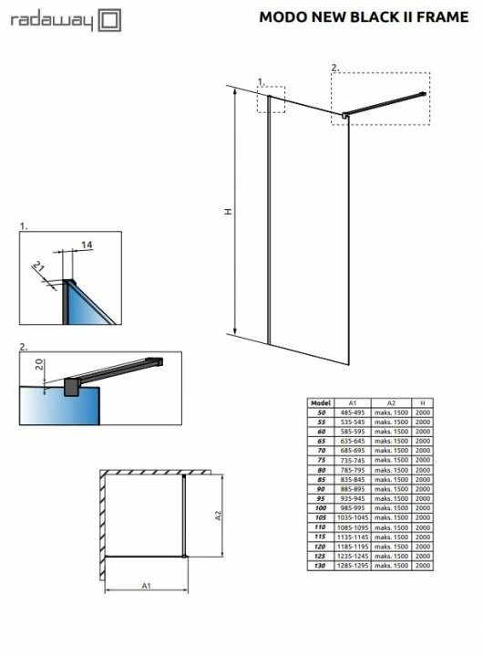 Cabina de dus Walk-in face parte din gama Radaway, colectia Modo New Black II Frame avand o dimensiune de 600 x H2000 mm. Este confectionata din sticla securizata cu o grosime de 8 mm. Cu ajutorul stratului de protectie cu proprietati hidrofuge EasyClean, sticla se mentine curata si permite intretinerea usoara a acesteia. Finisajul profilului este negru mat iar montajul cabinei se poate realiza pe cadita de dus sau direct pe pardoseala. Pentru aceasta dimensiune este recomandat un reglaj intre 585-595 mm.
