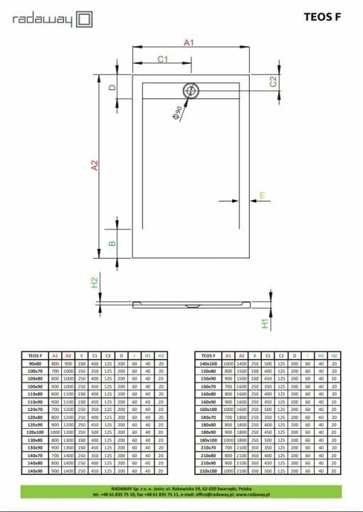 Cadita de dus dreptunghiulara din gama Radaway, colectia Teos F detine proprietati anti-alunecare care asigura o utilizare sigura. Cadita de dus este confectionata din marmura compozita de culoare antracit. Aceasta se monteaza direct pe pardoseala avand incorporat o rigola, iar orificiul pentru sifon este de 90 mm. Se recomanda achizitionarea unui sifon cod.HS1 (vezi produsele recomandate). Spre deosebire de alte cazi, acestea se pot decupa la dimensiunile non-standard dorite. Dimensiunile caditei sunt de 1600 mm lungime, 800 mm latime si 40 mm inaltime.