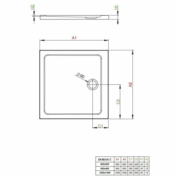 Cadita de dus Doros C, are suprafata neteda, extrem de lucioasa, antibacteriana pentru o curatare usoara, rezistenta la umezeala si mucegai. Se monteaza direct pe pardoseala, orificiul pentru sifon este de 90 mm, iar adancimea caditei este de 15 mm. Se recomanda utilizarea unui sifon TB90 sau R400SLIM.