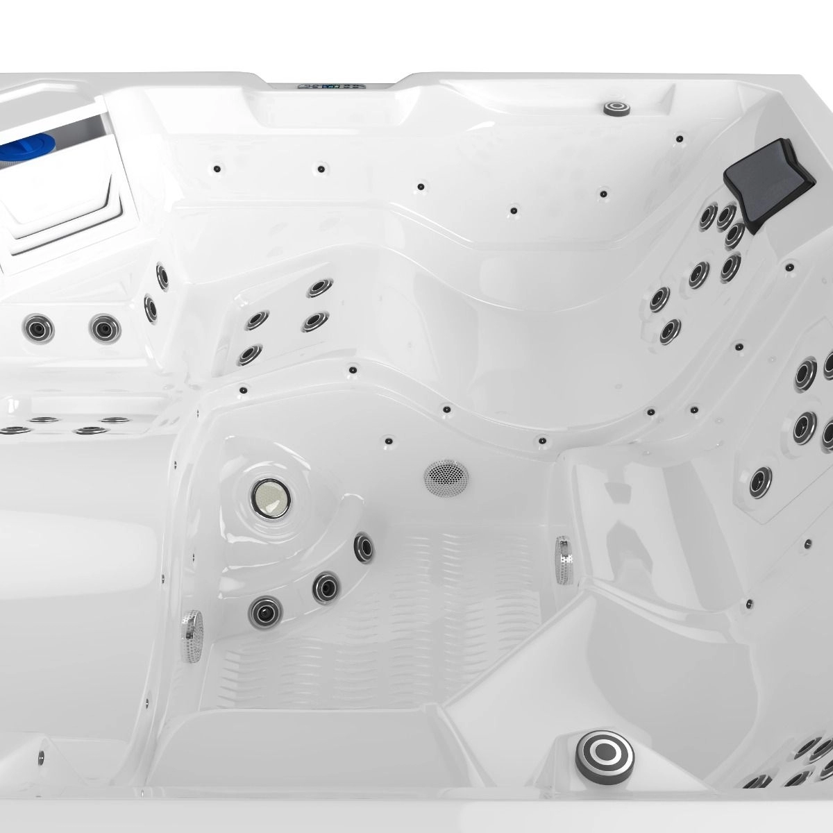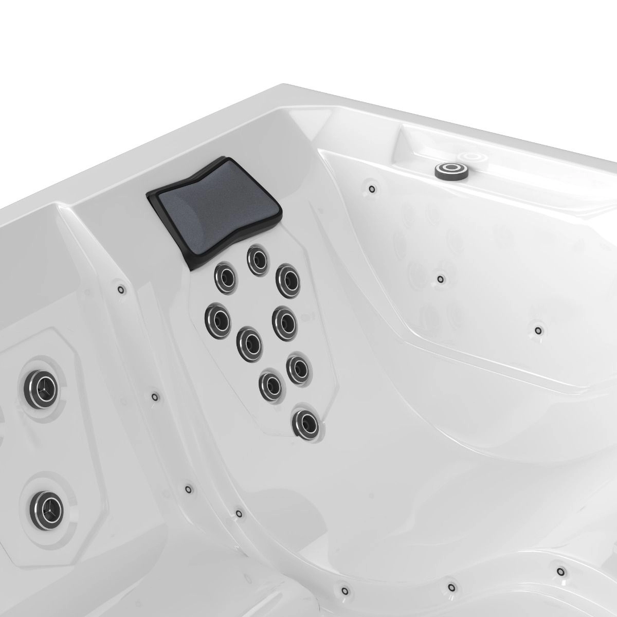 Cu dimensiuni de 210 x 210 x 90 cm si un volum de 1250 de litri, SPA32 ofera suficient spatiu pentru confort deplin, fiind proiectat ergonomic pentru a sustine corect corpul. Cele 51 de duze superJet de hidromasaj sunt amplasate strategic pentru a asigura o masare eficienta a zonelor tensionate, contribuind la relaxarea musculaturii si reducerea stresului acumulat.