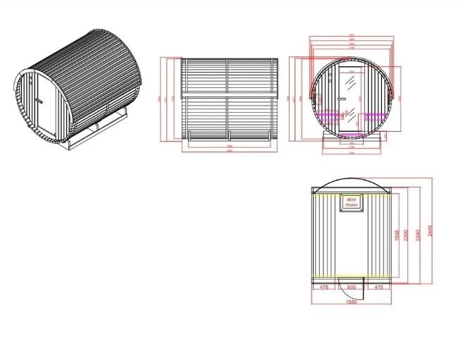 Avand dimensiuni exterioare de 195 x 245 x 195 cm si un interior spatios de 177 x 229 x 177 cm, NYBORG L poate acomoda confortabil intre 5 si 6 persoane, oferind suficient loc pentru sesiuni de relaxare in familie sau cu prietenii. Structura este realizata din lemn termo-modificat de molid (TERMO-MOD), recunoscut pentru rezistenta sa ridicata la umiditate si variatii de temperatura, precum si pentru durabilitatea in timp. Grosimea peretilor de 3.8 cm contribuie la mentinerea unei izolatii termice eficiente.