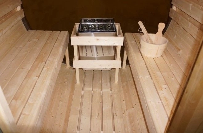 Incalzirea se realizeaza printr-o soba electrica dedicata saunelor finlandeze, cu o putere de 6 kW, compatibila atat cu alimentare la 230V, cat si la 380V. Sauna poate atinge temperaturi cuprinse intre 70 si 90°C, oferind conditiile ideale pentru o sauna uscata traditionala. Sistemul nu include control digital, pastrand astfel o utilizare simpla si intuitiva.