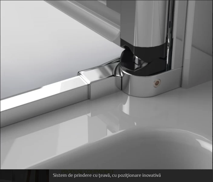 Usa de nisa batanta gama Radaway face parte din colectia Eos II DWJ, avand sticla securizata de 6 mm cu un invelis de tip Easy Clean ce impiedica depunerea calcarului si ajuta la o curatare mai usoara a partilor mobile. Profilele sunt de culoare crom iar montajul cabinei se poate realiza pe cadita de dus sau direct pe pardoseala. Usa de nisa batanta formata din doua parti (o parte fixa si una mobila) cu dimensiunea de 1200 x H1950 mm si cu un reglaj de 1180-1210 mm denota un avantaj real in curatarea si igienizarea acesteia. Montajul se realizeaza intre doi pereti (pe partea dreapta sau stanga) in functie de varianta aleasa avand un sistem de fixare cu profile care preiau din curburile peretului.