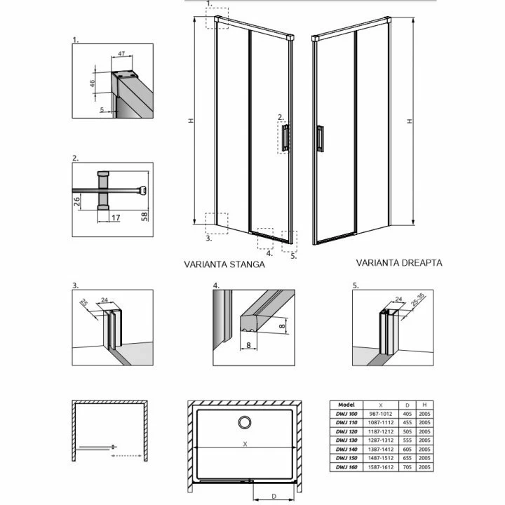 Usa de nisa culisanta Radaway face parte din colectia Idea Black DWJ, avand sticla securizata de 6 mm cu un invelis de tip Easy Clean ce impiedica depunerea calcarului si ajuta la o curatare mai usoara atat pe partile fixe, cat si pe cele mobile, profilele sunt negru mat iar montajul cabinei se poate realiza pe cadita de dus sau direct pe pardoseala. Posibilitatea de culisare a usilor cu un mecanism silentios si dimensiunea de 1200 x H2005 mm, denota un avantaj real in curatarea si igienizarea acesteia. Montajul se realizeaza intre doi pereti, astfel in cat calea de acces sa fie pe partea dreapta avand un sistem de fixare cu profile care preia curburile peretului. Inchiderea cabinei se realizeaza prin etansare printr-o banda magnetica si o garnitura de elastomer rezistenta la temperatura si umiditate.